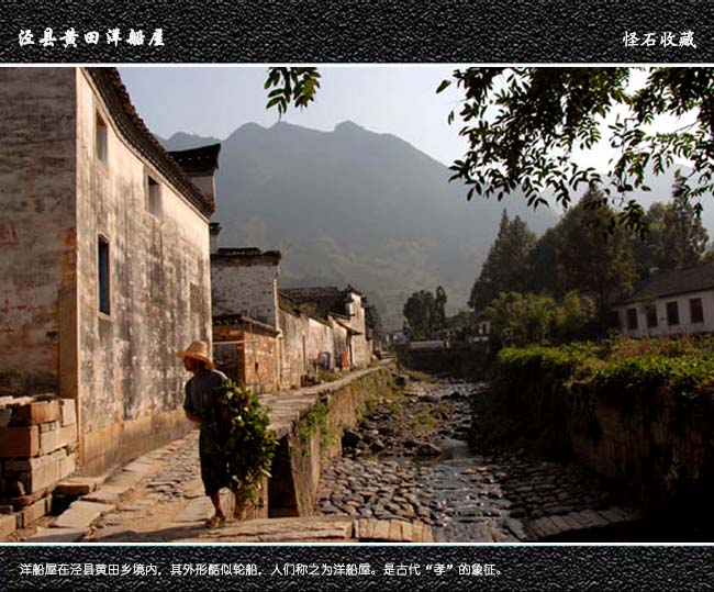 黄田洋船屋坐落于距泾县城约40公里的群山环抱中的榔桥镇双河村,其历史悠久,源远流长,是古代“孝”的象征。清道光年间,黄田盐茶商朱一乔、朱宗怀父子在沪经商,生意兴隆,业绩蜚然。
